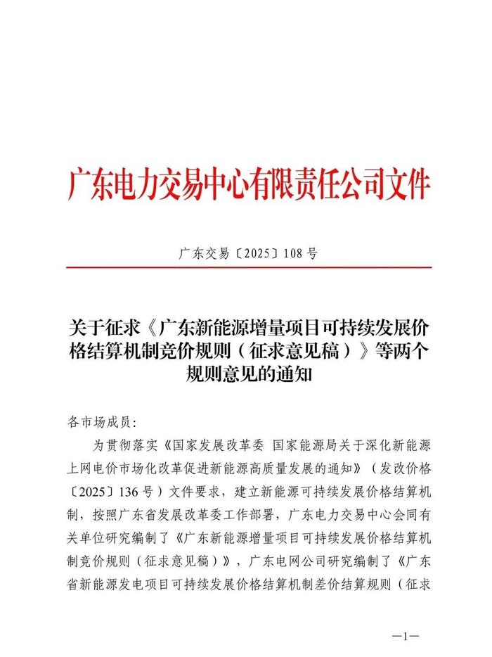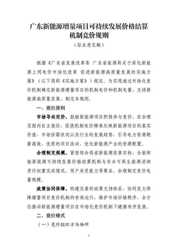日前,广东省电力交易中心印发《广东新能源增量项目可持续发展价格结算机制竞价规则(征求意见稿)》以及及《广东省新能源发电项目可持续发展价格结算机制差价结算规则(征求意见稿)》,就广东省新能源竞价细则给出有关要求。