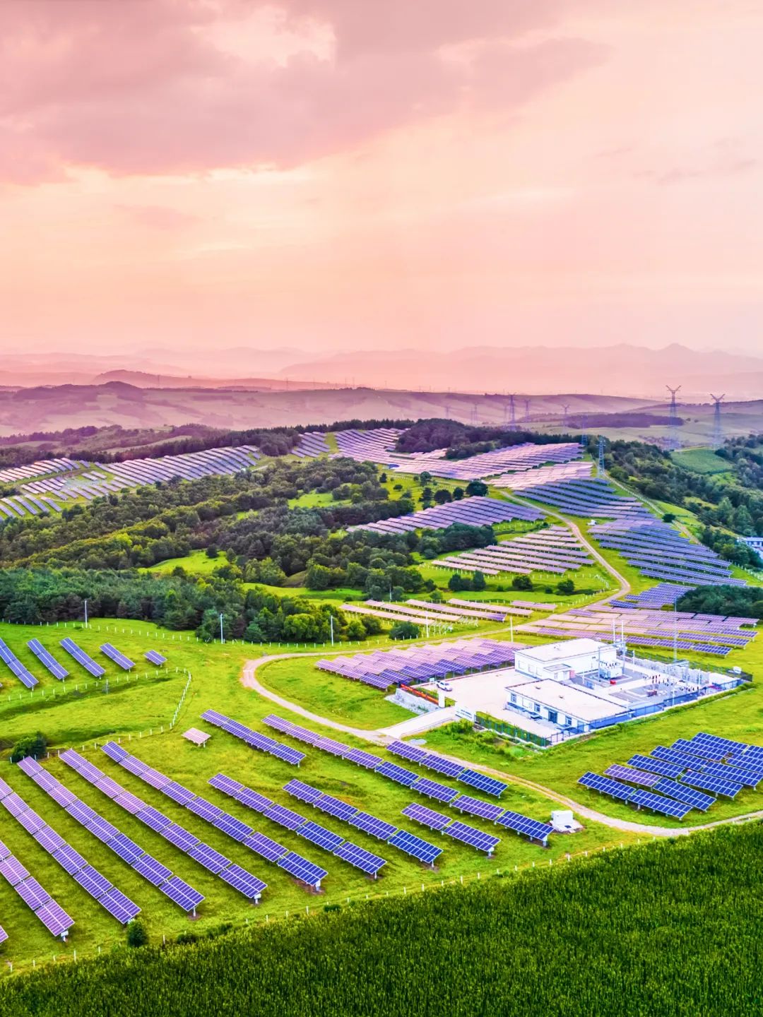 晚霞中,吉林省的一处光伏发电站(图:图虫创意)