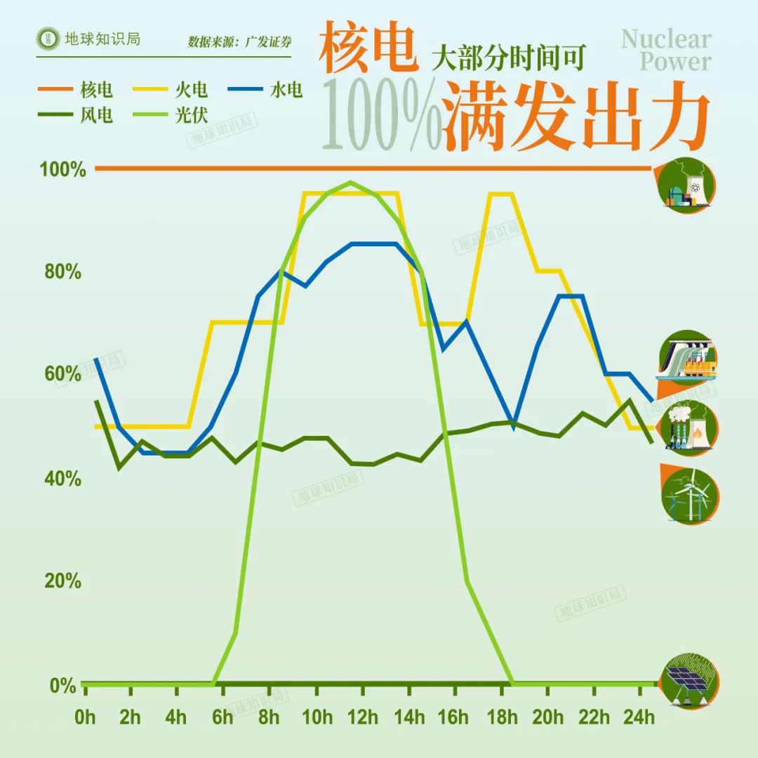 好在绿电里,有能够稳定发电的核电,除检修时间外,核电全天出力可维持100%,是维持电力稳定性的重要组成部分。