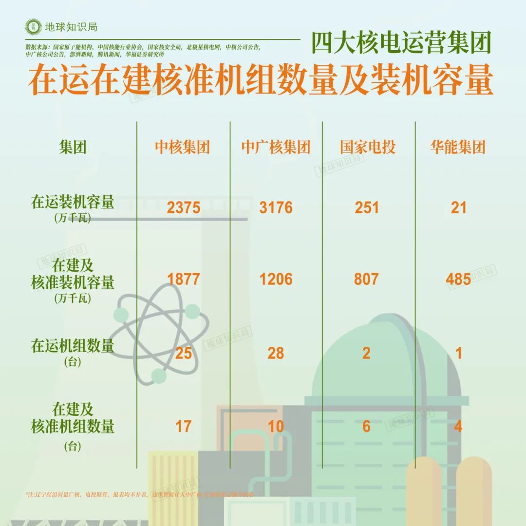 截至2024年5月,国内核电站主要是中国核电和中国广核两大核电巨头建设和运营