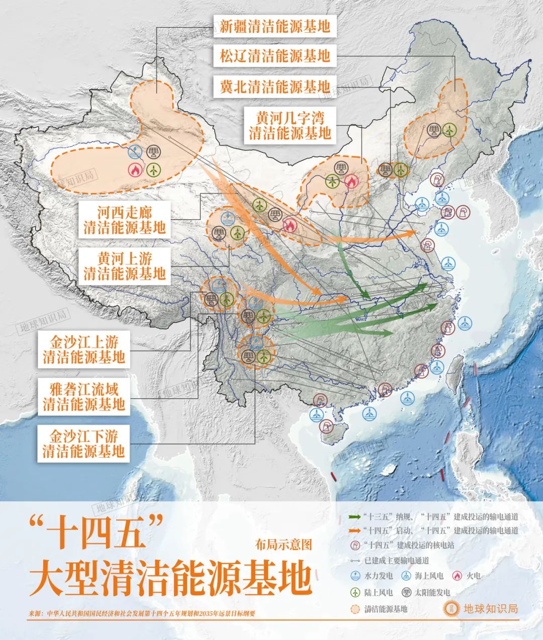 这些新建的绿电项目,多集中于西部、北部、东北地区和海上,正如“十四五”规划中提到的“大力提升风电、光伏发电规模,加快发展东部分布式能源,有序发展海上风电,加快西南水电基地建设,安全稳妥推动沿海核电建设,建设一批多能互补的清洁能源基地”。