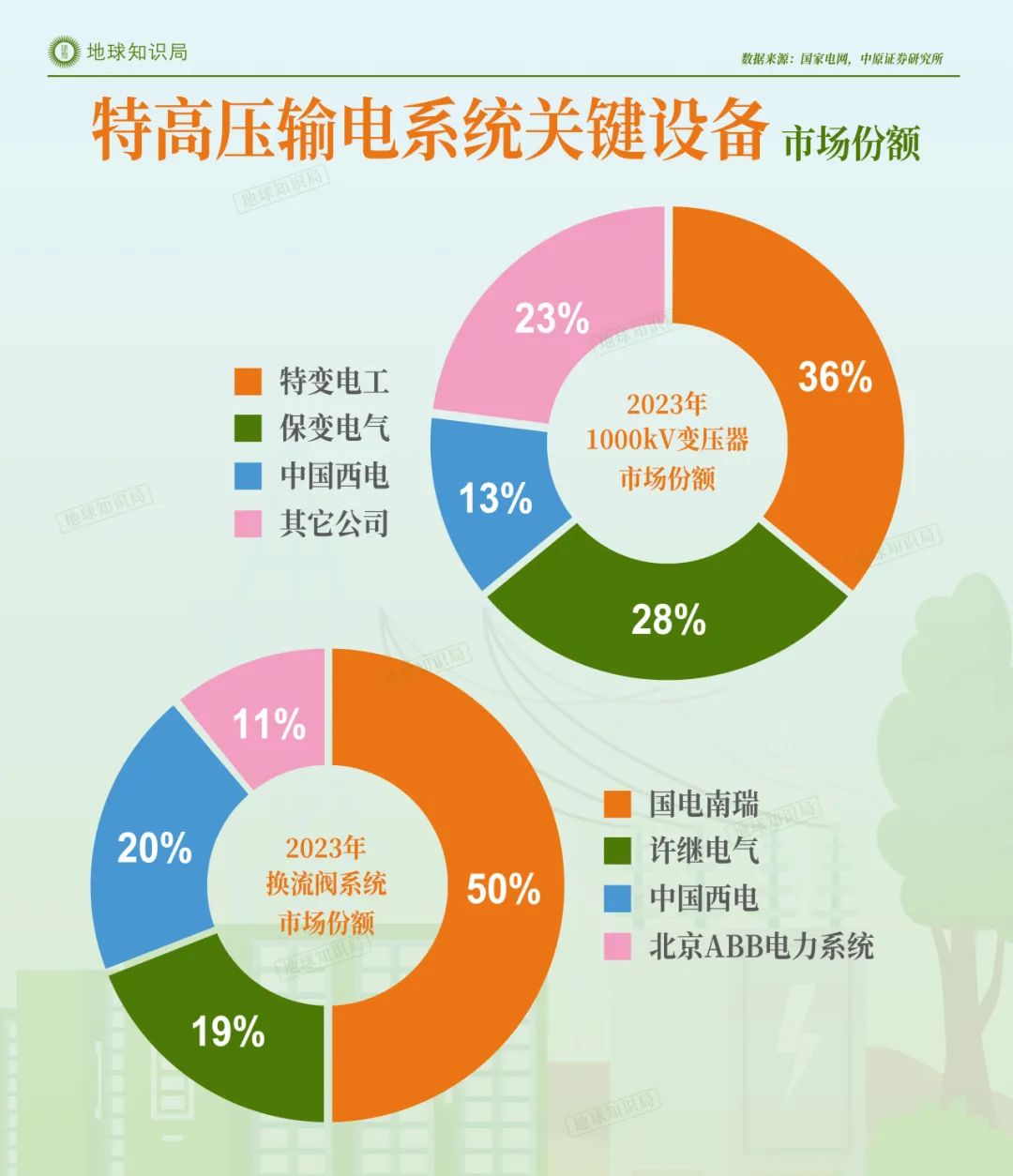 中国特高压输电设备较为先进,国产化程度很高,就拿电网ETF(561380)来说,指数中覆盖的一众龙头公司,国电南瑞、许继电气、特变电工等都在2023年中标特高压输电系统关键设备,并且占据相当高的市场份额。