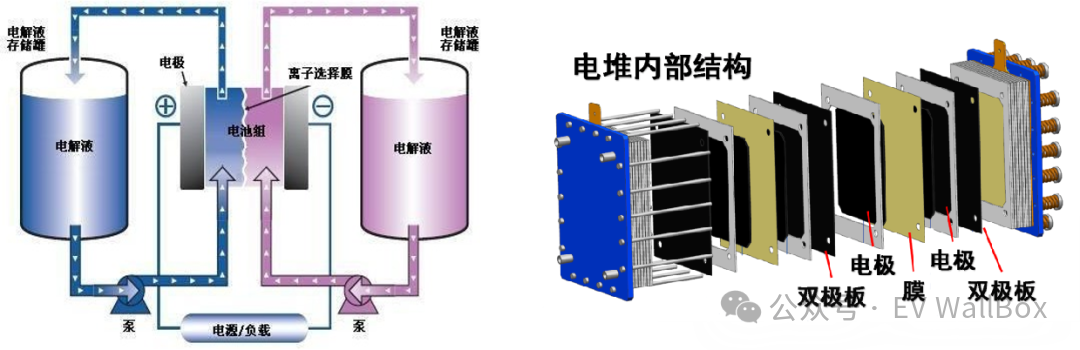 全钒液流电池(Vanadium Redox Flow Battery, VRFB):以钒离子为电解质,通过可逆氧化还原反应存储能量。