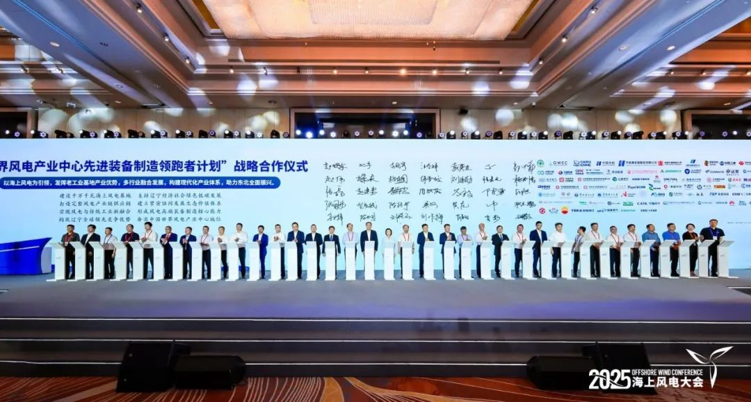 在2025海上风电大会上,来自风电、钢铁、冶金、化工、机电、造船、港口等行业的33家龙头企业共同签约“世界风电产业中心先进装备制造领跑者计划”,这些企业将共同发力,形成一个覆盖全产业链的协同发展格局,强链补链延链,将辽宁打造成风电先进装备制造产业高地。