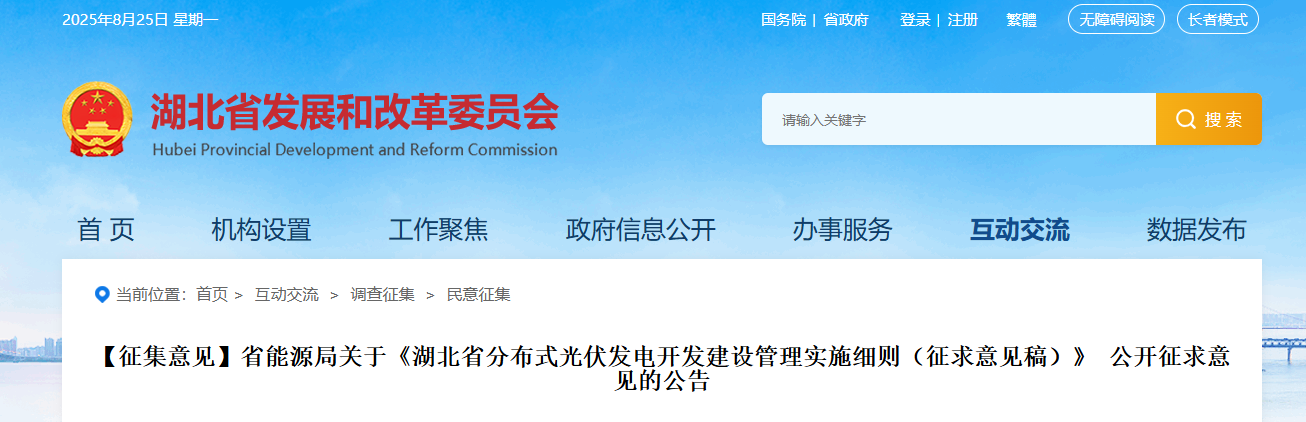 此次公开征求意见时间为2025年8月22日至2025年9月22日。欢迎有关单位和社会各界人士通过电子邮件(邮箱:3551176@qq.com),或登录湖北省发展和改革委员会门户网站首页,进入“互动交流”专栏,提出意见建议。