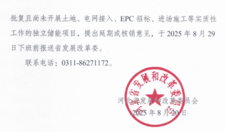近日,河北省发改委发布《河北省发展和改革委员会关于加快推进独立储能项目建设提升电力调峰和新能源消纳能力的通知》,明确加快建设进度、统筹规划布局、梳理滞后项目等。