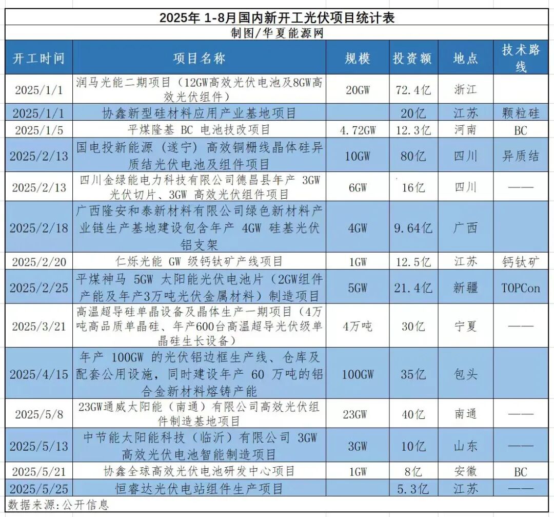 从今年年初至8月20日,国内新增拟上马和新开工光伏项目共计46个,涉及产能超237GW,投资总额超800亿元。