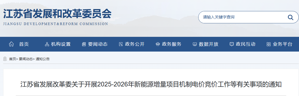 江苏省发展改革委关于开展2025-2026年新能源增量项目机制电价竞价工作等有关事项的通知