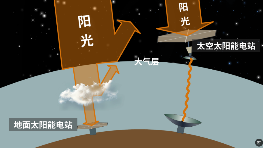 未来,随着技术成熟,还有望通过卫星在太空聚集太阳能,再以微波或激光形式传输至地面转化为电能供人类使用。