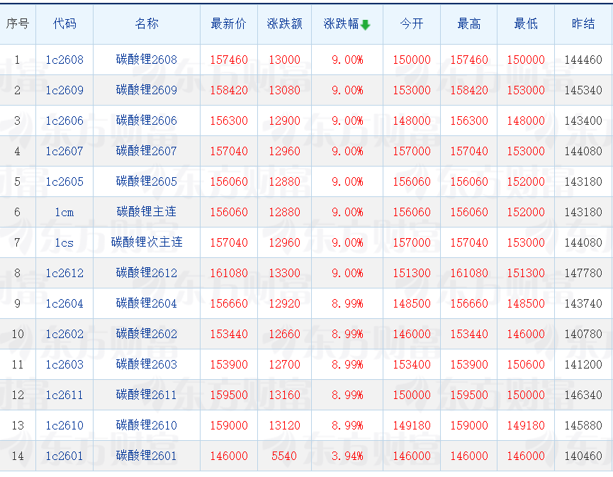 值得注意的是,1月12日,碳酸锂期货主力合约涨停,幅度为9%。碳酸锂2612价格达到161080元/吨,突破16万元,业界一片哗然。