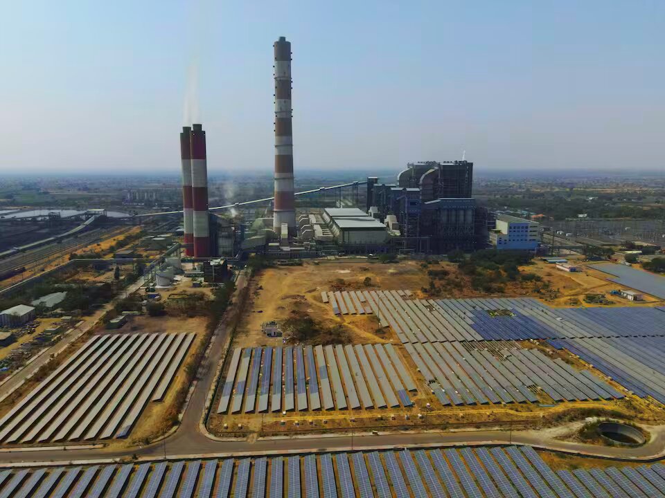 2025年3月2日,印度索拉普尔的太阳能电池板与国家热电公司(NTPC)发电厂的无人机视图。路透社/弗朗西斯·马斯卡伦哈斯/资料照片