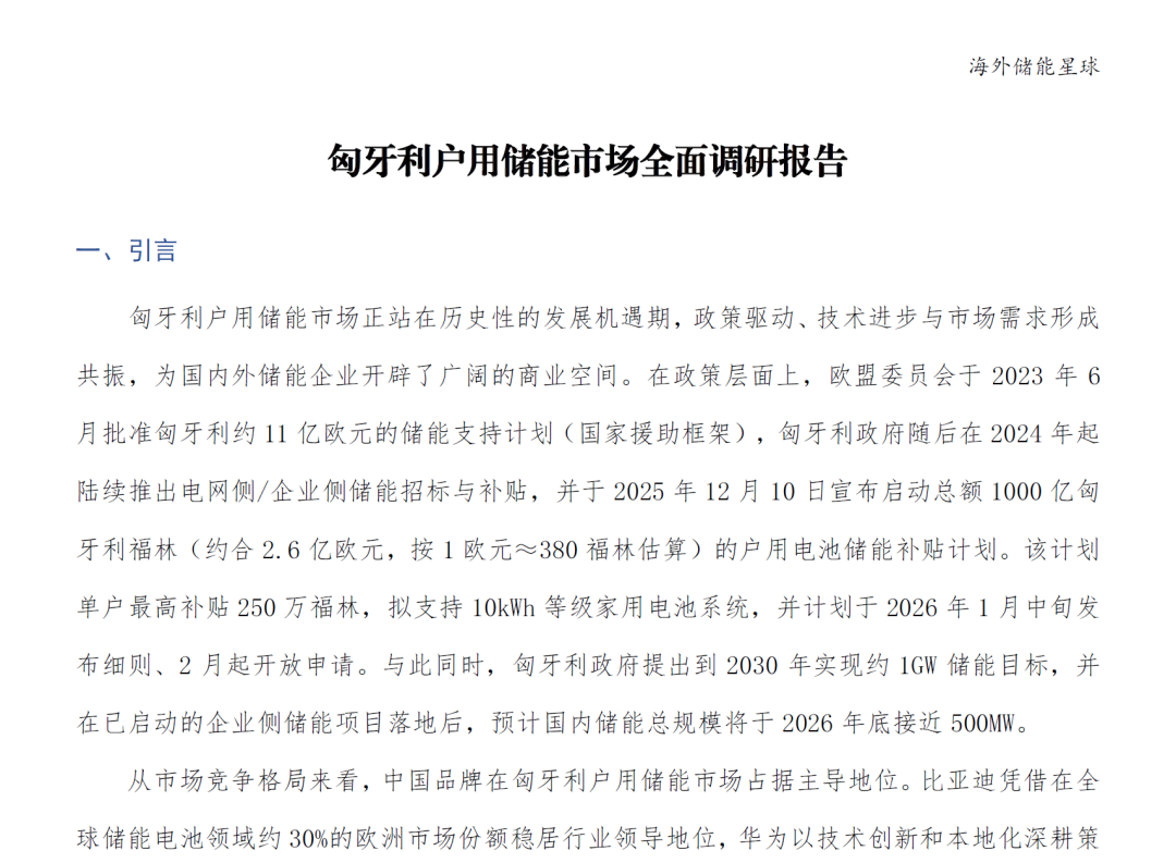 按下全球加速键!匈牙利正式开启2026年户储“黄金元年”