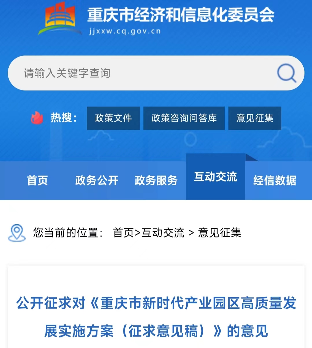 公开征求对《重庆市新时代产业园区高质量发展实施方案(征求意见稿)》的意见