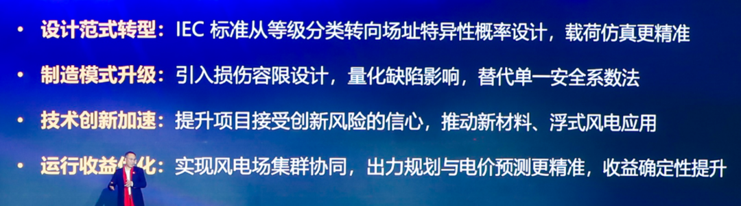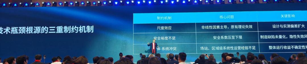 尺度效应、安全裕度不足、单体-系统冲突。对应核心问题分别是非线性因素主导、原有理论失效;安全系数压制下限;场站、区域级系统性运营经验不足。对应关键影响包括,设计与实测偏差扩大;制造缺陷未量化,隐性失效风险增加;整体收益不确定性增加。