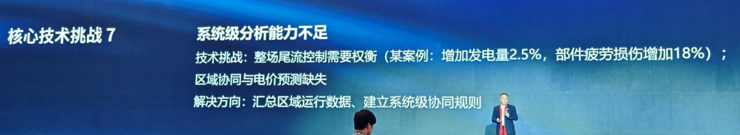 技术挑战:整场尾流控制需要权衡(某案例:增加发电量2.5%,部件疲劳损伤增加18%);区域协同与电价预测缺失。