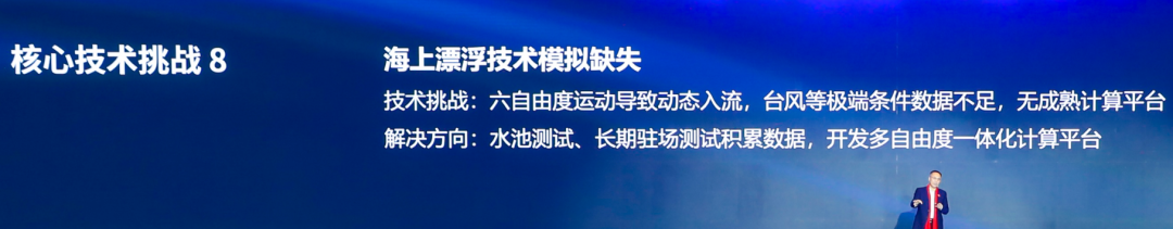 技术挑战:六自由度运动导致动态入流,台风等极端条件数据不足,无成熟计算平台。