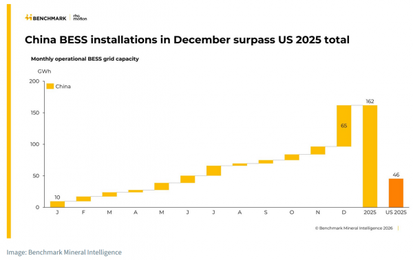 中国2025年12月BESS安装量超过美国2025年总装机容量