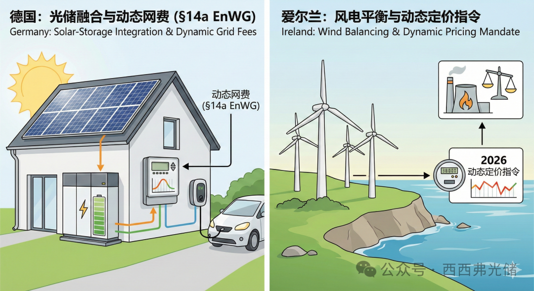 2025年的一个关键转变是从“被动发电”向“主动灵活性”过渡。高电价市场不再仅仅补贴光伏发电,而是通过强制或经济激励手段,推动电池储能和灵活性资源(虚拟电厂,VPPs)的应用,以应对电网拥堵挑战。德国、英国和爱尔兰引领了这一监管转向,而塞浦路斯等国则引入了强制储能的硬性规定。