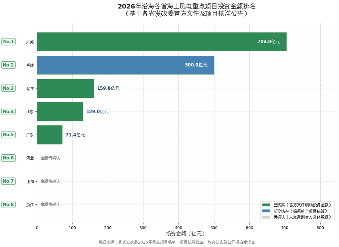 2026年海上风电投资呈现超级项目引领特征,五省已核实总投资达1564亿元,其中单体投资超百亿元项目达2个,标志着海上风电正式进入百亿级项目时代。