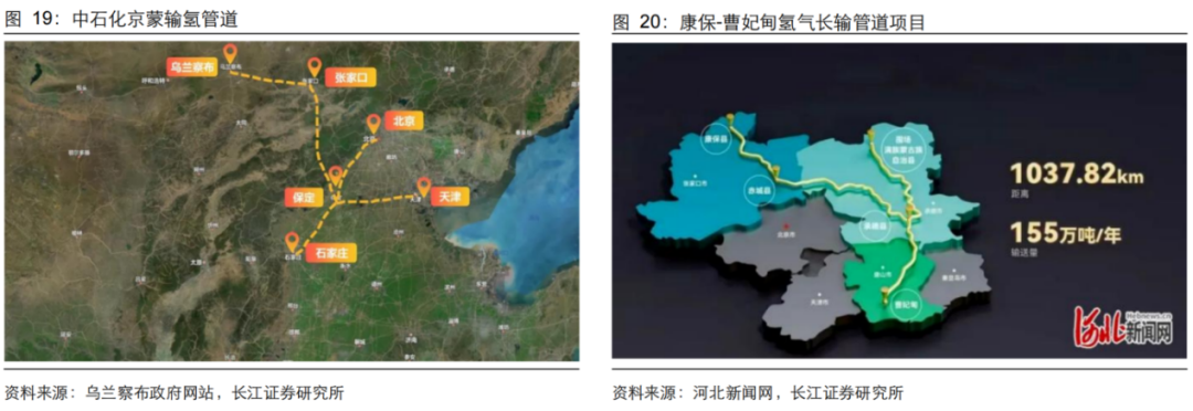 图说:我国在建的标志性输氢管道项目来源:长江证券研究所