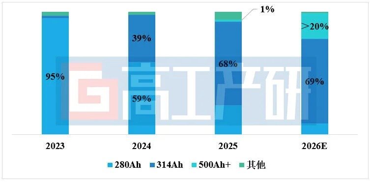 大电芯狂飙:2026年500+Ah渗透率正在“踩油门”
