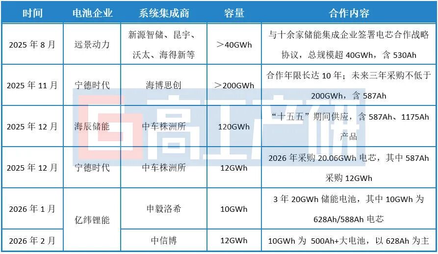 如宁德时代587Ah电芯已于2025年11月交付中东阿布扎比项目,配套Masdar 19GWh储能,同时其530Ah电芯配套的4GWh储能系统将供应新加坡Vena Energy;亿纬锂能的628Ah电芯则陆续签约包括澳大利亚EVO Power的2.2GWh订单及与中东欧TSL Assembly签署的1GWh储能系统项目;而远景动力530Ah电芯更是量产便同步配套集成进入全球市场。