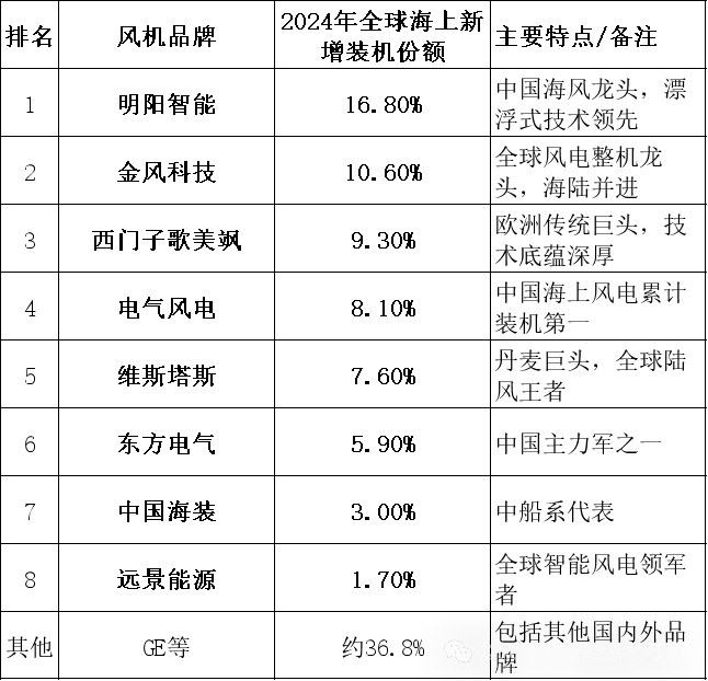 明阳智能:2025年海上新增装机136.7万千瓦,市场份额24.6%,紧随其后。