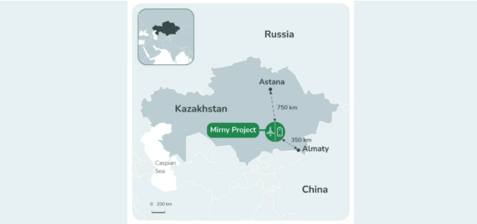 米尔内项目位于哈萨克斯坦东南部的江布尔州,这里是中亚风力资源最丰富的区域之一。根据披露,该项目总投资12亿美元(约合人民币87亿元),计划建设一座装机规模达1GW的陆上风电场,共计配备150台风机,以及600MWh的电池储能系统(BESS)。
