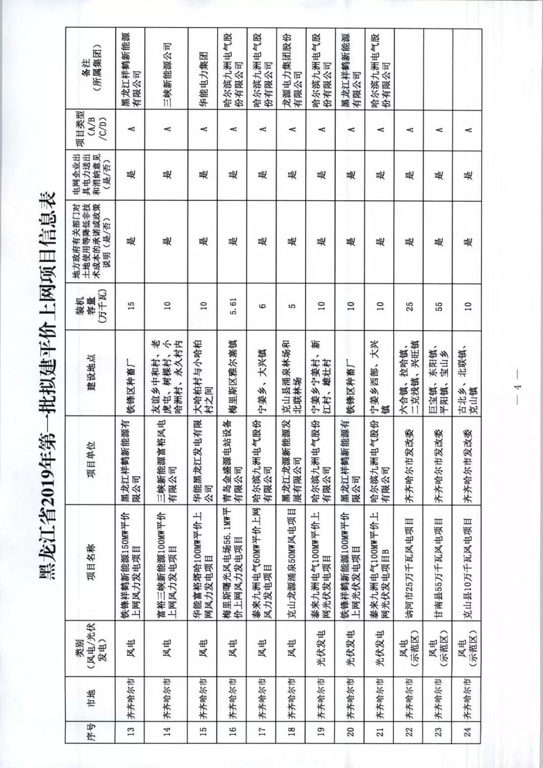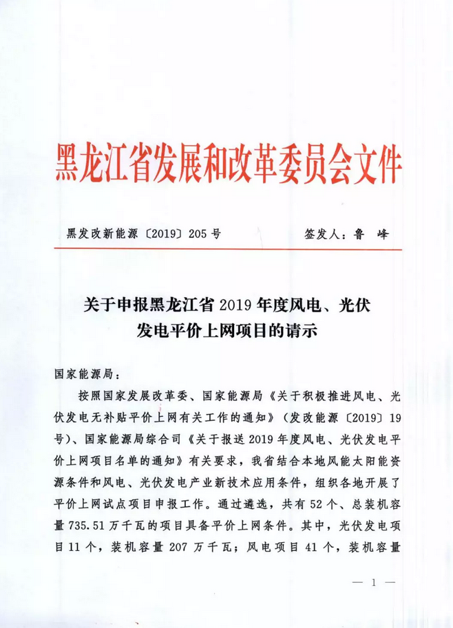 黑龙江平价项目名单发布!风电项目41个,光伏项目11个