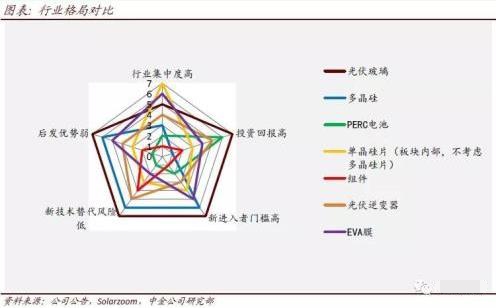 通过行业历史回顾可以看到,每一轮周期中均有细分行业通过快速降本或技术进步,获得超额回报,成为市场宠儿。但先发优势无法保持的特性也使得超额回报无法长存。子板块中光伏玻璃、EVA膜和逆变器由于技术路线稳定,行业格局集中,虽然无法获得技术革新的超额回报,但价格压力较小,仍可受益于需求增长,穿越周期带来确定回报。