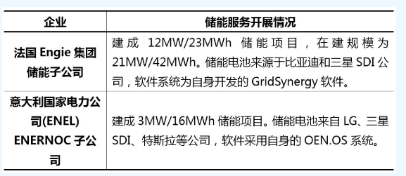 表1 国外能源电力企业的储能服务开展情况