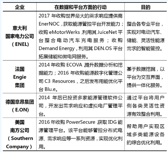 表3 国外大型能源电力企业在数据和平台方面的行动