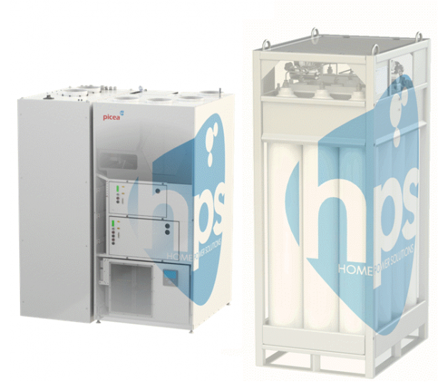 HPS Picea(R)由电池、电解槽、氢燃料电池和储氢装置组成,将能源行业中一些最有希望的新发展组合到了一起,从而实现了前所未有的能源自主性消费产品:全年100%离网的清洁无CO2能源,此外,利用废热可节省多达50%的供热成本。