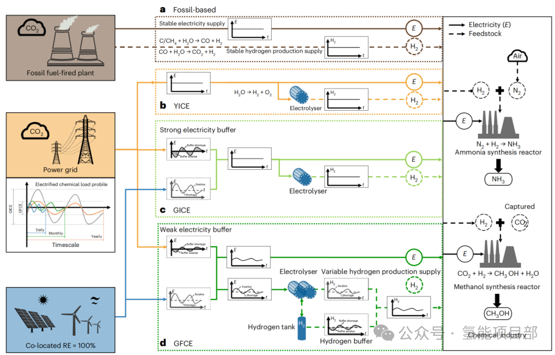 GFCE路径的核心在于“绿色”和“柔性”两个关键属性。所谓“绿色”,是指通过绿电直连,为化工生产提供零碳电力原料,从而实现源头上的低碳减排。而“柔性”则体现在电氢协同系统的灵活运行,缓冲可再生能源的间歇性和波动性,使得化工生产能够在不同时间尺度上实现能源供需的平衡。