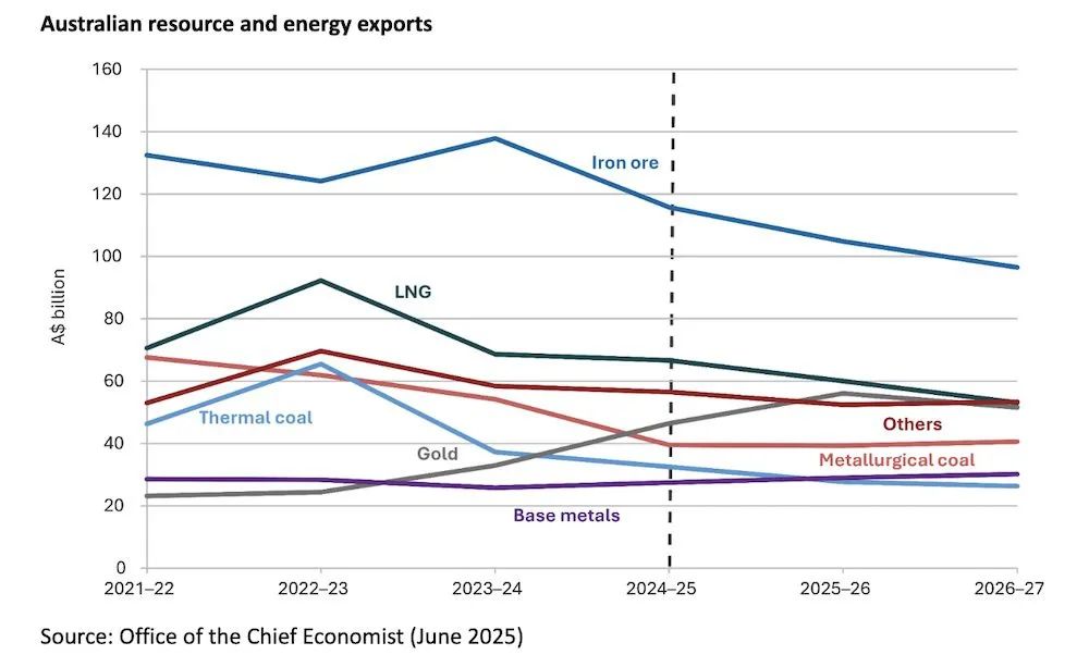 与2022-2023财年相比,预计到2026-2027财年,LNG收入将下降42%,铁矿石收入下降22%。
