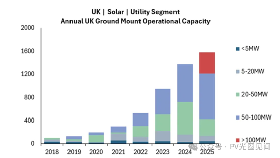 2025年,英国太阳能装机容量已突破2GWp,迎来近十年来最佳开局,同时还有3.GWp的大型地面光伏项目正在建设中。