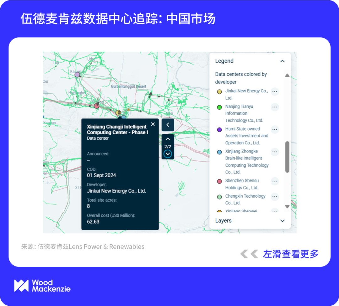 与美国一样,中国的数据中心也才刚刚起步。根据伍德麦肯兹基准预测,中国数据中心的电力需求将以每年约17%的速度增长,到2030年达到479TWh,大致相当于2024年法国全国的电力需求水平。
