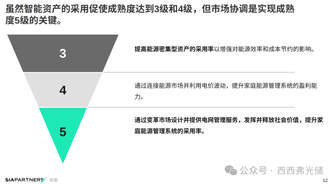 能够基于机器学习或人工智能算法,实现家庭用能的自动化调度,并与光伏等发电资产深度集成。(目前欧盟多数已部署的系统处于此级别之下)