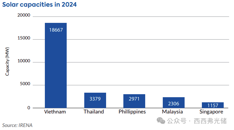 越南以其约19吉瓦的装机容量,遥遥领先,是东盟地区最大的太阳能市场。其快速扩张始于2017年左右,主要得益于吸引私人投资的政策。根据该国更新的第八版电力发展规划(PDP8),越南设定了雄心勃勃的目标:到2030年太阳能装机容量达到20.6吉瓦,到2050年达到惊人的189吉瓦。