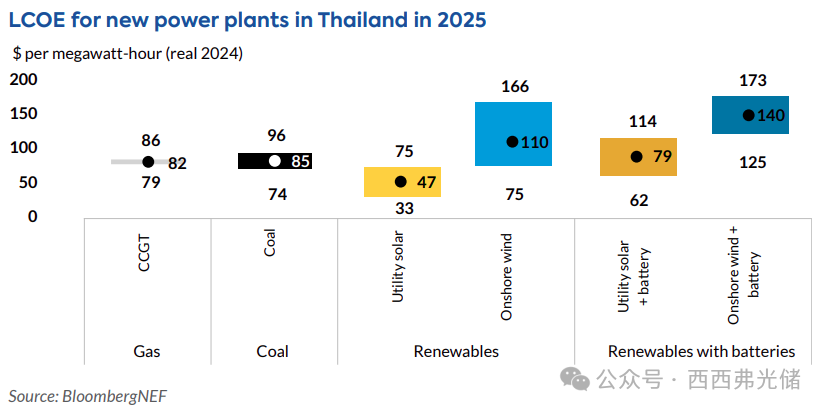 由于设备成本下降,公用事业规模的太阳能已成为泰国成本最低的新增发电来源。其平准化度电成本(LCOE)在每兆瓦时33美元至75美元之间。