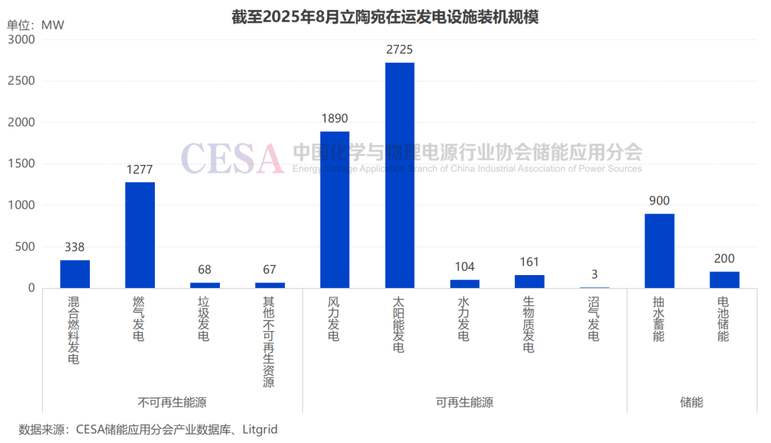 2025年继续保持增长态势,据CESA储能应用分会产业数据库不完全统计,截至2025年8月,立陶宛电力总装机规模达到7.733GW,光伏和风电装机规模进一步提升。