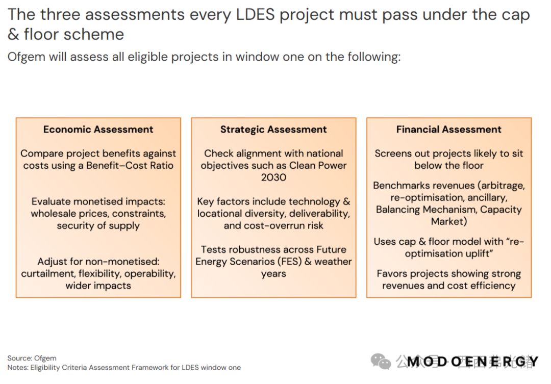 长时储能项目的遴选将基于一种“综合性评估(in-the-round assessment)”,该评估结合了经济性、战略性和财务性三个维度的考量。简而言之,这意味着Ofgem将全面审视项目,而非依赖单一分数,且各项评估没有固定的权重。