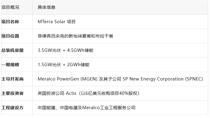 菲律宾最大的光储项目MTerra Solar近日取得了关键进展,其电网接入方案已正式获得菲律宾能源监管委员会批准,这为项目在2026年投入运营扫除了一个主要障碍。为了帮大家快速了解核心信息,我将该项目的基本情况整理成了下面的表格: