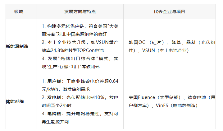 下面的表格梳理了越南新能源制造与储能领域的主要发展方向与特点: