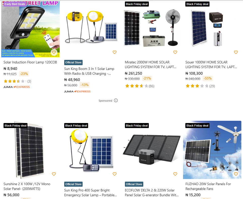 Jumia平台数据显示太阳能储能产品去年黑五销量翻3倍,不少卖家备货量翻倍。