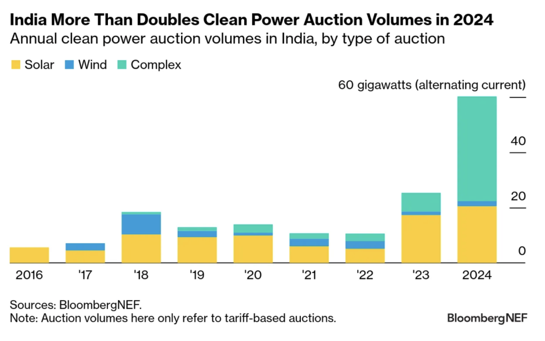 2024年,印度拍卖机构授予的清洁能源项目总容量约60吉瓦,较前一年翻倍有余,其中近三分之二为复合型项目。考虑到此类项目超额配置,预计到2030年,印度仅通过复合项目即可新增超过30吉瓦风电装机。