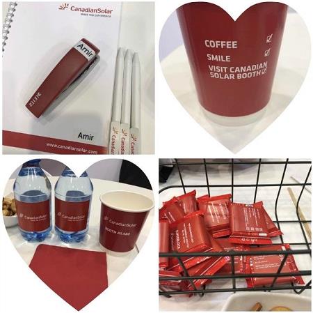 作为一家全球化企业,阿特斯在全球20多家国家和地区建立了子公司和分支机构。阿特斯欧洲分公司成立于2009年,目前团队成员近80名,来自全球28个国家。阿特斯展位上着定制球衣的工作人员,胸前的国家名称代表着每个人的国籍。