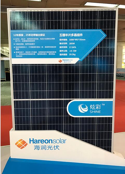 另据了解,在本届展会上,其它众光伏企业巨头借势推出最新产品。天合光能首次推出其高效领跑的新产品——PERC双核组件;晶澳太阳能推出两款PERC半片产品和PERC双面新产品;其次腾晖光伏强势推出“智能光伏+科技农业”,率先延伸光伏产业链的发展;正信光电展出两款“蓝鲸” 12栅高效组件和“白鲟”石墨烯组件最新技术产品等等。