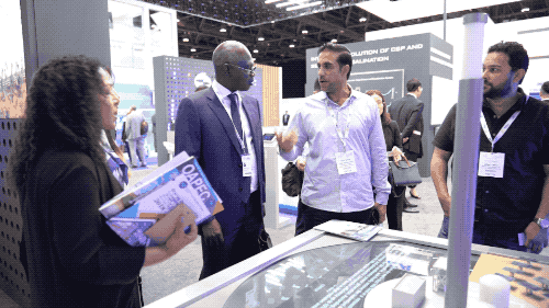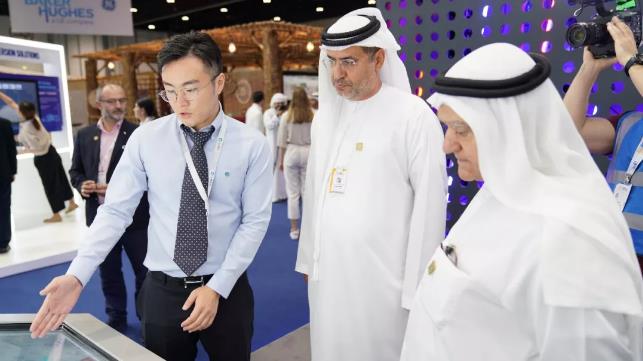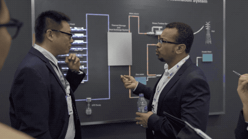 迪拜光热光伏混合电站是展区的全明星项目,马克图姆太阳能园区第四期950MW光热光伏发电项目建成后,每年将为迪拜270000多家住户提供清洁电力,减少140万吨碳排放量。