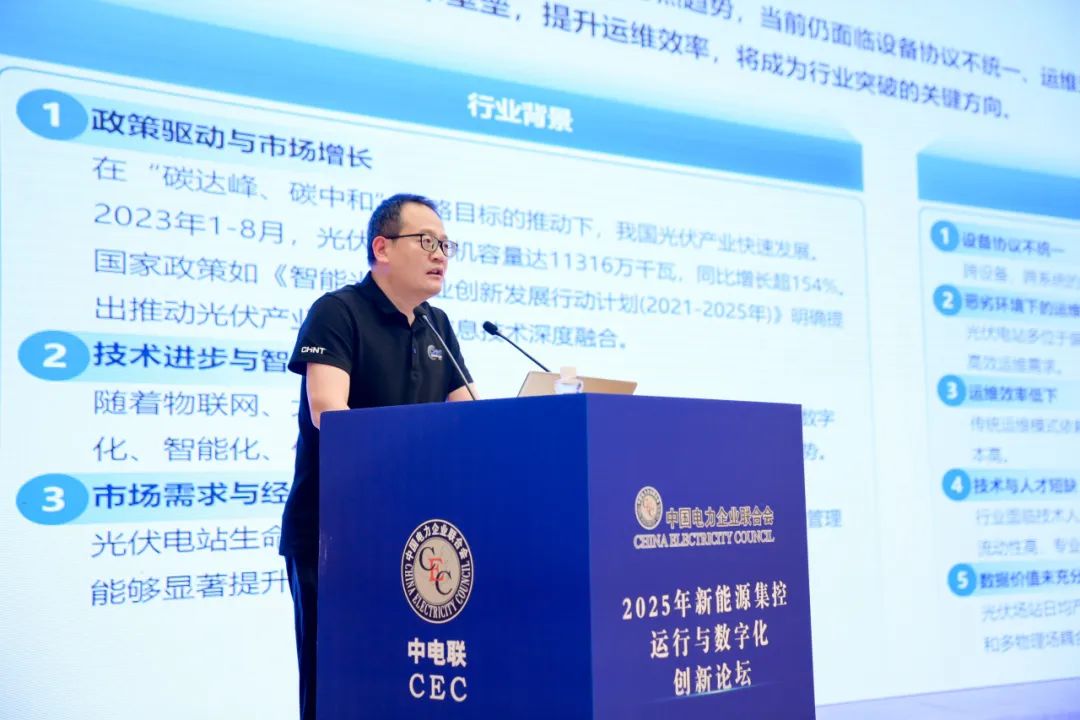 正泰智维副总经理李振明受邀参会,并发表了题为《全链路赋能,数智驱动未来——光伏电站智慧化场站构建与实践》的专题演讲,全面展示了正泰智维在推动光伏场站智能化升级方面的理念、方案与实践成果。